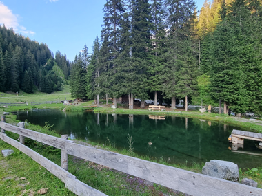 Auf demselben Weg geht es wieder retour. Da keine Einkehrmöglichkeiten vorhanden sind, solltest Du einen Rucksack mit ausreichend Verpflegung mitnehmen. Wenn genügend Zeit eingeplant wird, lässt sich die Tour auch mit einer Wanderung zum Valschavielsee oder auf den Albonakopf (2482 m) verbinden.