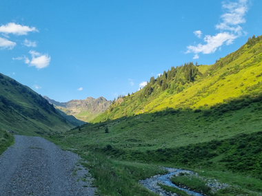 Vom Startpunkt der Tour in St. Gallenkirch fährst Du auf dem Radweg bis zum Mountain Beach in Gaschurn. Hier zweigt die Tour links ab ins unberührte Valschavieltal - mit seinen Wasserfällen und alten Maisäßsiedlungen eines der ursprünglichsten Seitentäler des Montafon. Auf dem breiten Schotterweg wird die Tour bis zum Maisäß Valschaviel zu einer ziemlich knackigen Angelegenheit mit konstanter Steigung. Vorbei am malerisch angelegten Fischteich, begleitet von Gebirgsbächen fährst Du nun auch etwas flacherem Gelände ins hintere Tal bis zur Mardusa Alpe. Der letzte Anstieg bis kurz vor die Hirtenhütte auf dem inneren Rossberg (2.160 m) fordert nochmals volle Konzentration, von hier läufst Du noch ca. 300 Meter bis zur Hütte. Oben angekommen erwartet Dich ein großartiges Panorama auf die umliegende Berglandschaft.