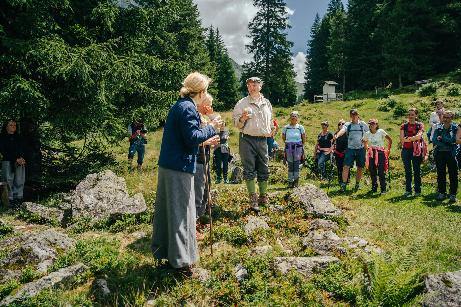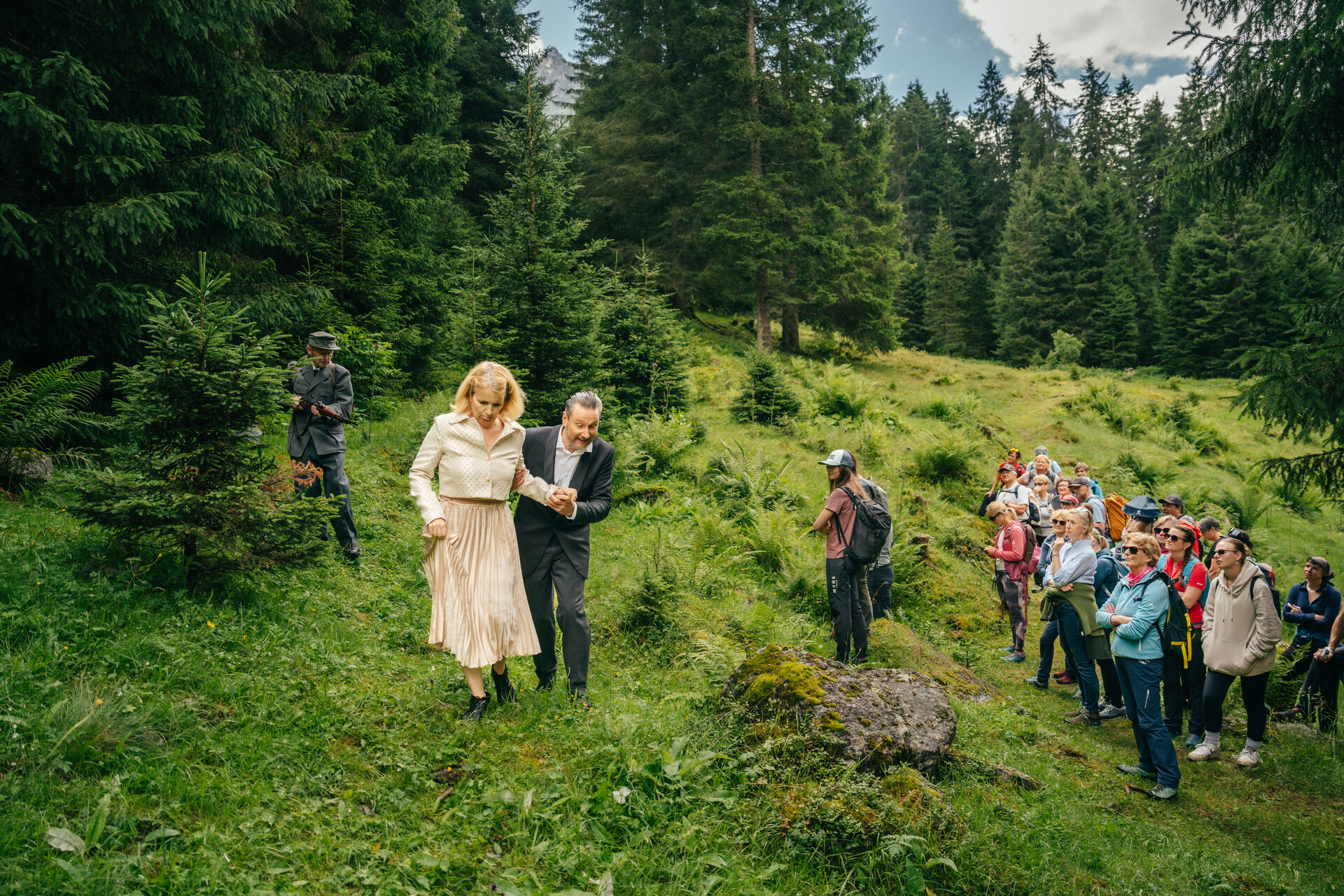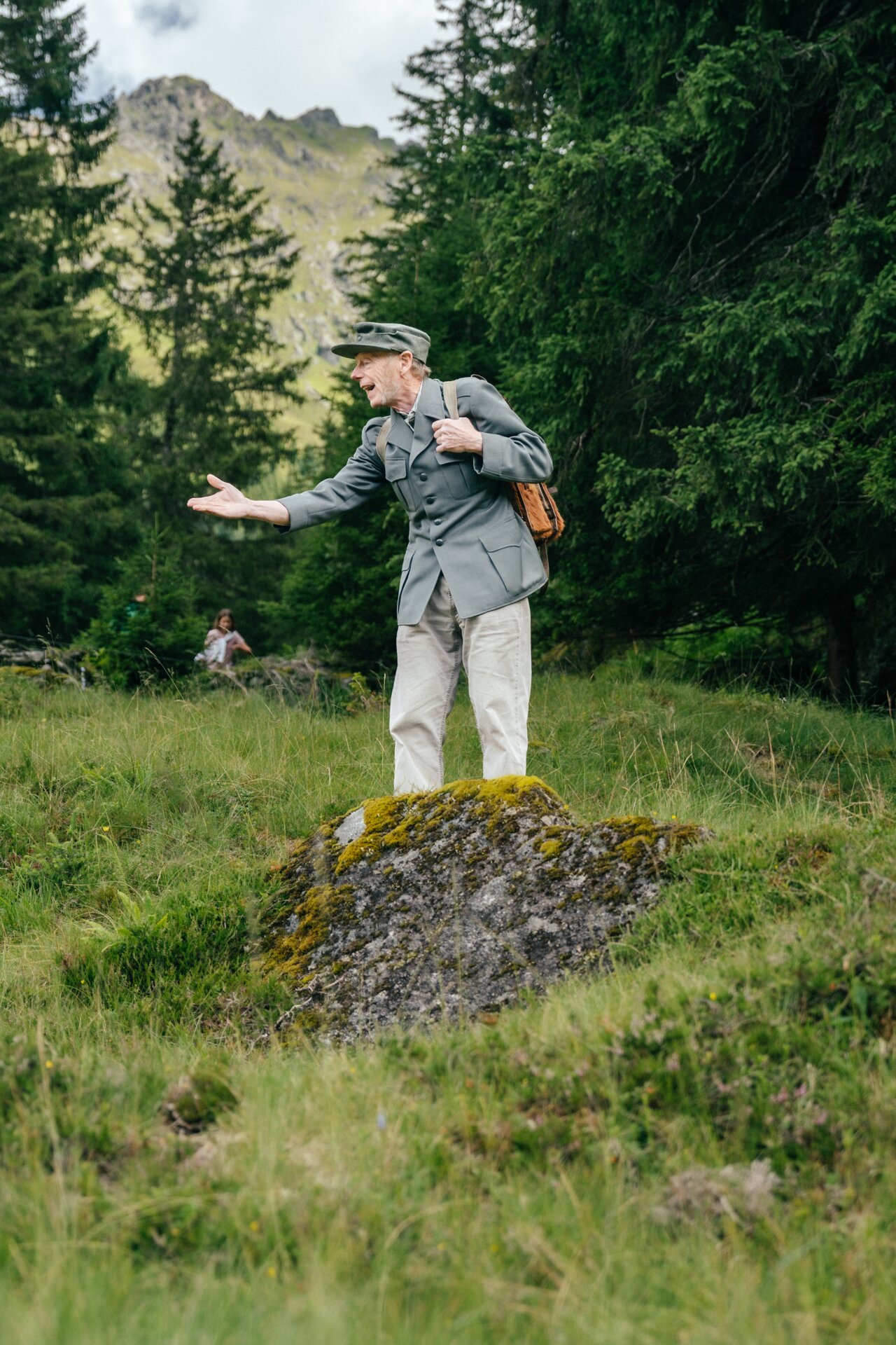 Ob ein belgischer Deserteur auf der Flucht, ein Hochstaplerpaar im Abendkleid am Sarotla-Pass oder jüdische Intellektuelle im Dialog mit nationalsozialistischen Grenzfantasien: Diese Theaterwanderung beleuchtet historische Grenzerfahrungen in all ihren Dimensionen – geografisch, sozial, politisch, menschlich.