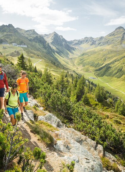 Leichte bis mittelschwere Wege, Themenwanderungen und kinderwagengerechte Touren warten auf Euch. Wie wäre es mit den Muntafuner Gagglawegen, dem Kräuterweg „Probiar Amol“ oder dem „Naturkräftepfad am Hochjoch“?