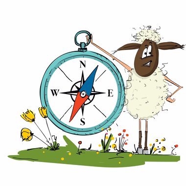 - Die Zahl, die jetzt in die Richtung Deines Ziels zeigt, ist die richtige Himmelsrichtung.