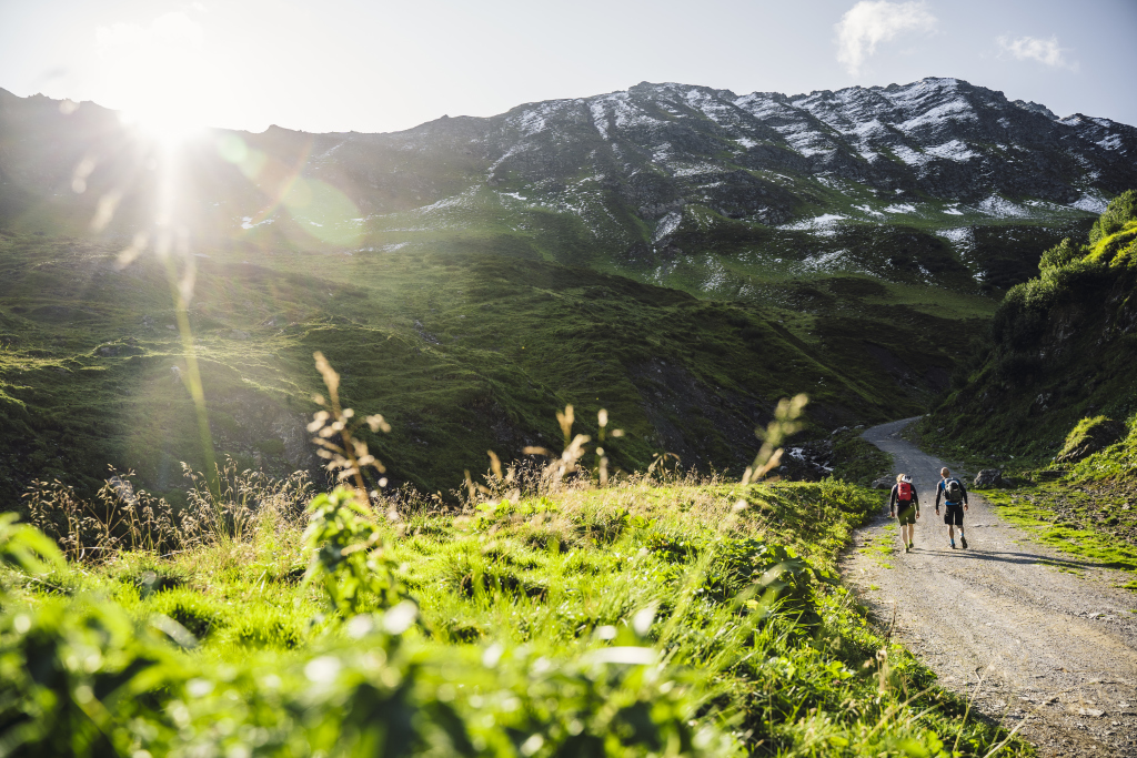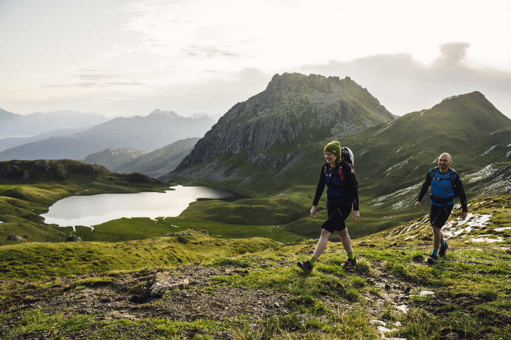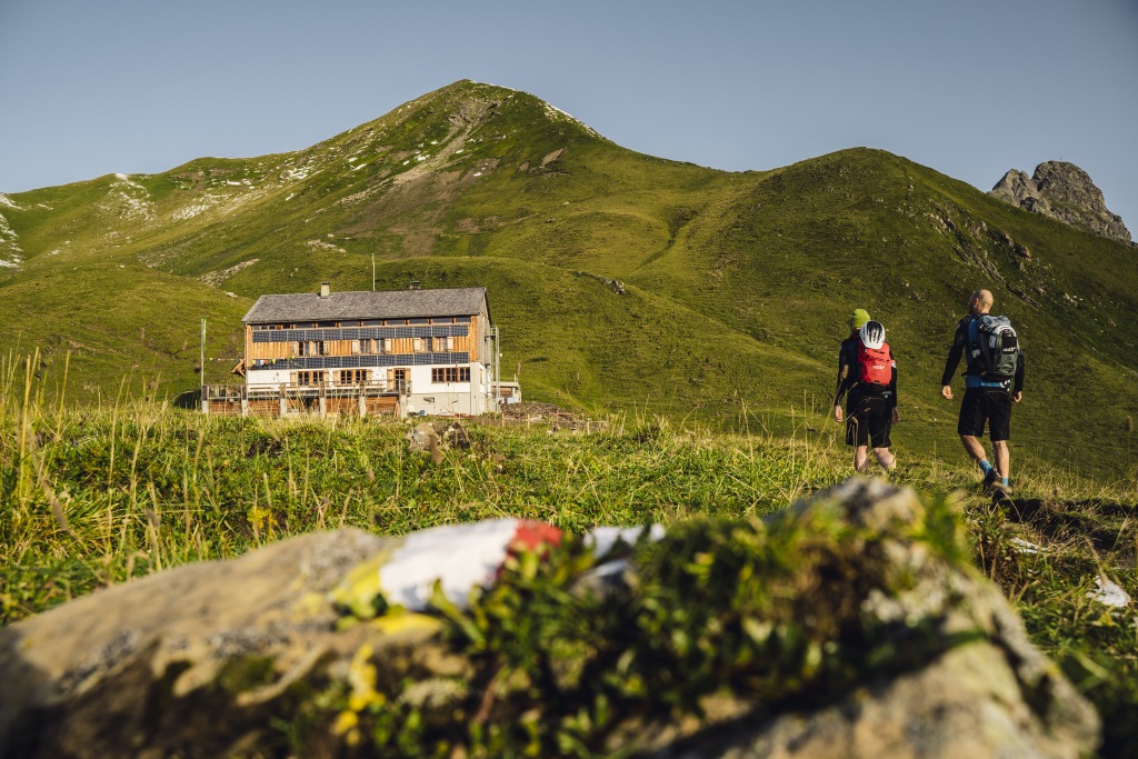 Vom Tal (660 m) ins Hochgebirge (2.200 m). Diese fantastische Tour durch das Gampadelstal zur Tilisunahütte (AV Sektion Vorarlberg) ist nur per Bike & Hike möglich.