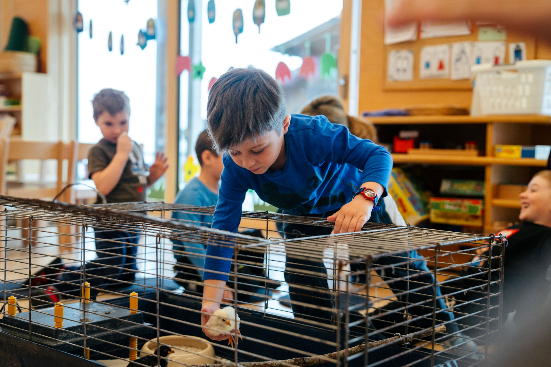 Flauschi war das erste Küken, das sich aus dem Ei kämpfte. Zusammen mit der Kindergartenpädagogin Tiada, säuberten die Kinder den Käfig und lernten dabei nicht nur praktische Fähigkeiten, sondern auch wichtige Werte wie Mitgefühl, Fürsorge und Zusammenarbeit. Fabio: „Du musst mit Gefühl…“ Klara und Toni entwischten die kleinen, flinken Tierchen. Gemeinsam und mit Bedacht fingen sie die Küken wieder ein.