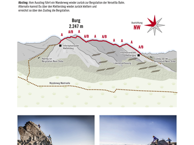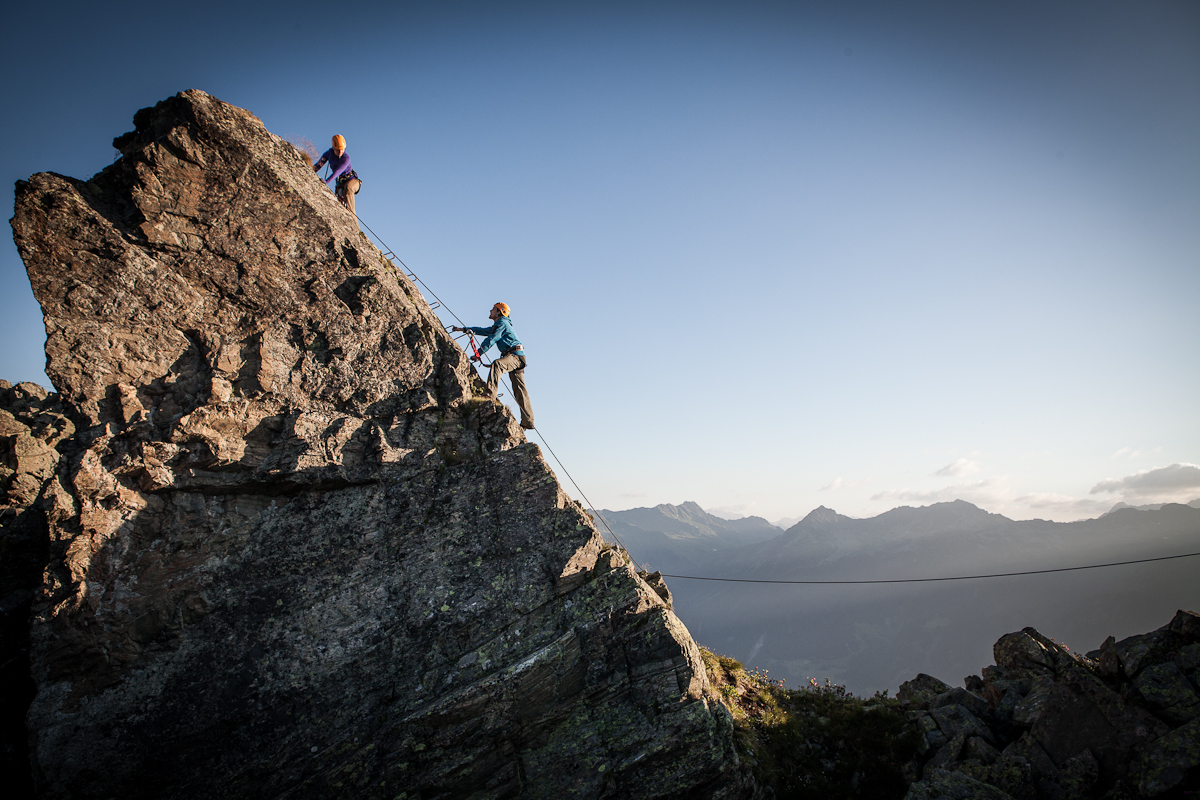 Descent: From the exit, a hiking trail leads back to the Versettla Bahn mountain station. Alternatively, you can climb back over the via ferrata and thus reach the mountain station via the approach.