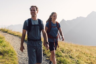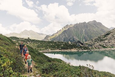 Der Weg: Ganz entspannt führt ein breiter Schotterweg zu den malerischen Speicherseen - eine gemütliche Wanderung, fast wie ein langer Spaziergang. Dabei eröffnet sich ein fantastischer Blick auf den smaragdgrünen Gandasee und ins Valzifenztal. Hier kannst Du gemütlich flanieren - auch mit dem Kinderwagen.