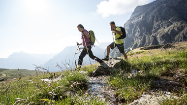 Der Weg: Auf einem schmalen Pfad geht's 270 Höhenmeter bergab zum kristallklaren Gandasee - Trittsicherheit und festes Schuhwerk empfohlen. Dort springen Mutige ins kühle Wasser, während Genusswanderer am reizvollen Ufer rasten.
