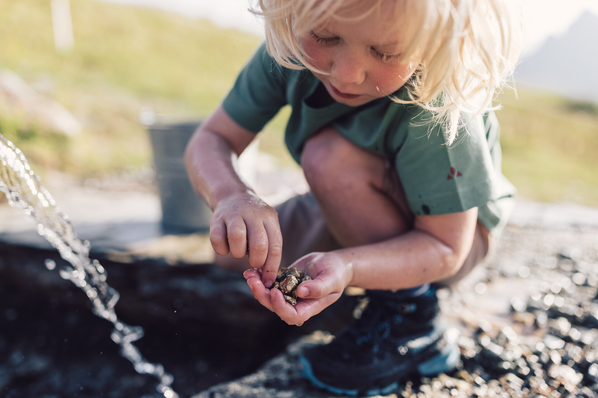 Grüaß di! i bin d' Marie. Als Hirtenkind lebte ich in einer längst vergangenen Zeit. Auf dem Schafberg hütete ich kleine Kälbchen und freche Zicklein. Komm mit - ich zeige Dir einen Rundweg mit Balanciersteinen, sprudelnden Wasserbrunnen und einem Bachbett voller Goldnuggets. Und gemeinsam besuchen wir die Eselchen Clemens und Caruso, die sich am liebsten hinter den flauschigen Ohren kraulen lassen.