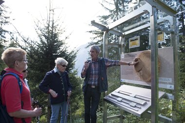 Taucht mit unserer Kultur- und Geschichtsführerin Monika in die Geschichte und die Spuren der Bergbauzeit des Montafons ein. Die 12 teils interaktiven Stationen vom Silberpfad zeigen die verschiedenen archäologischen Methoden von der Knochenarbeit der grabenden Archäologen bis hin ins High Tech Labor der Wissenschaftler. Das Thema wird umfang- und facettenreich, dennoch leicht verständlich erklärt. Jede der Stationen bildet ein Puzzlestück, welches sich am Ende der Führung in das Gesamtbild der archäologischen Arbeit erklärend einfügt.
