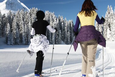 Du hast keine Langlaufausrüstung? Oder Deine Daheim vergessen? Du kannst diese bei der Schneesportschule Silbertalleihen.