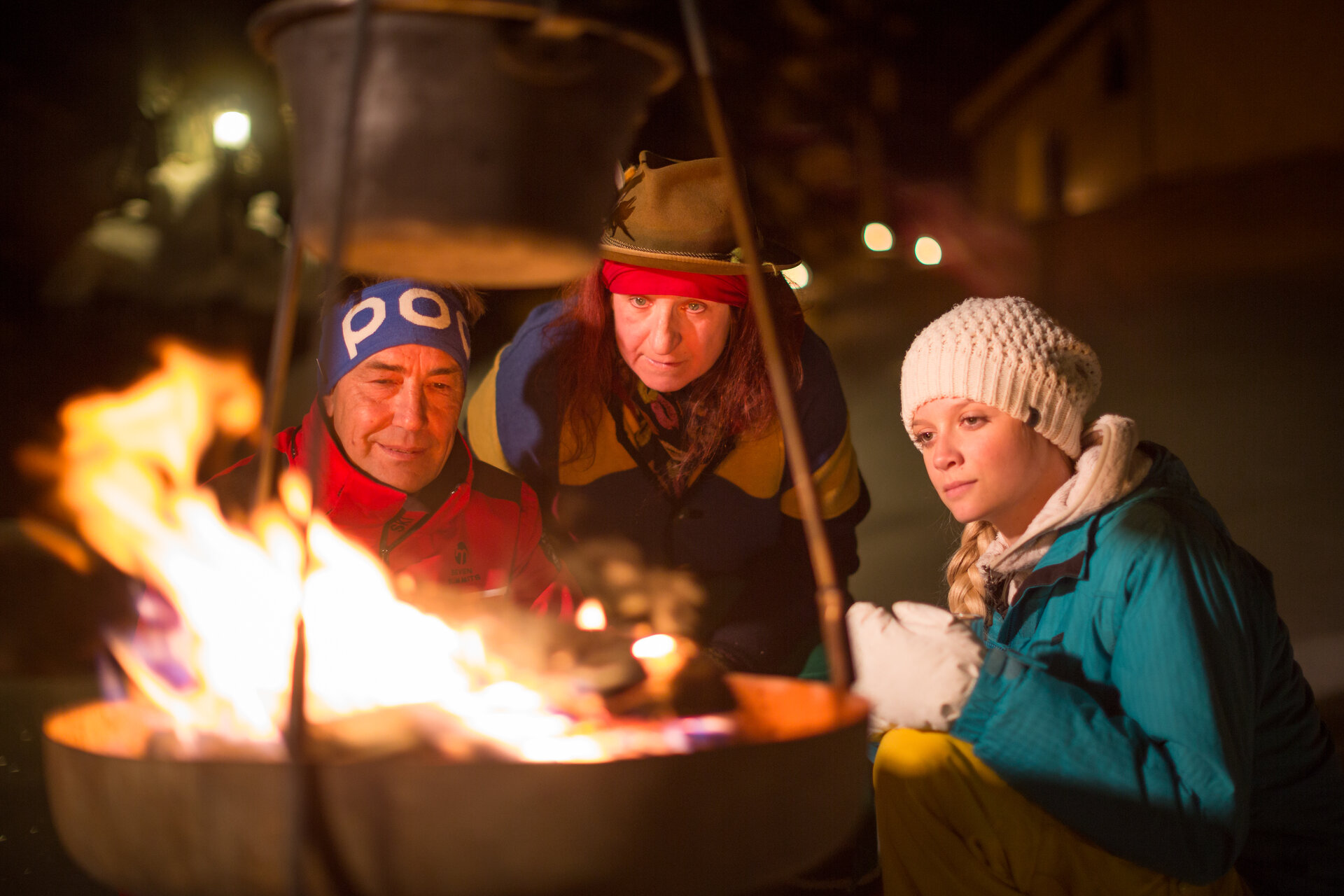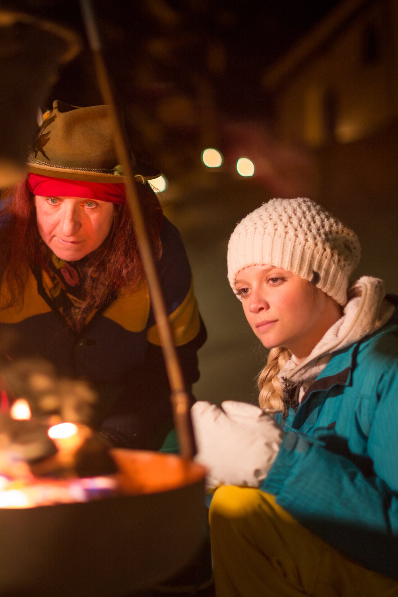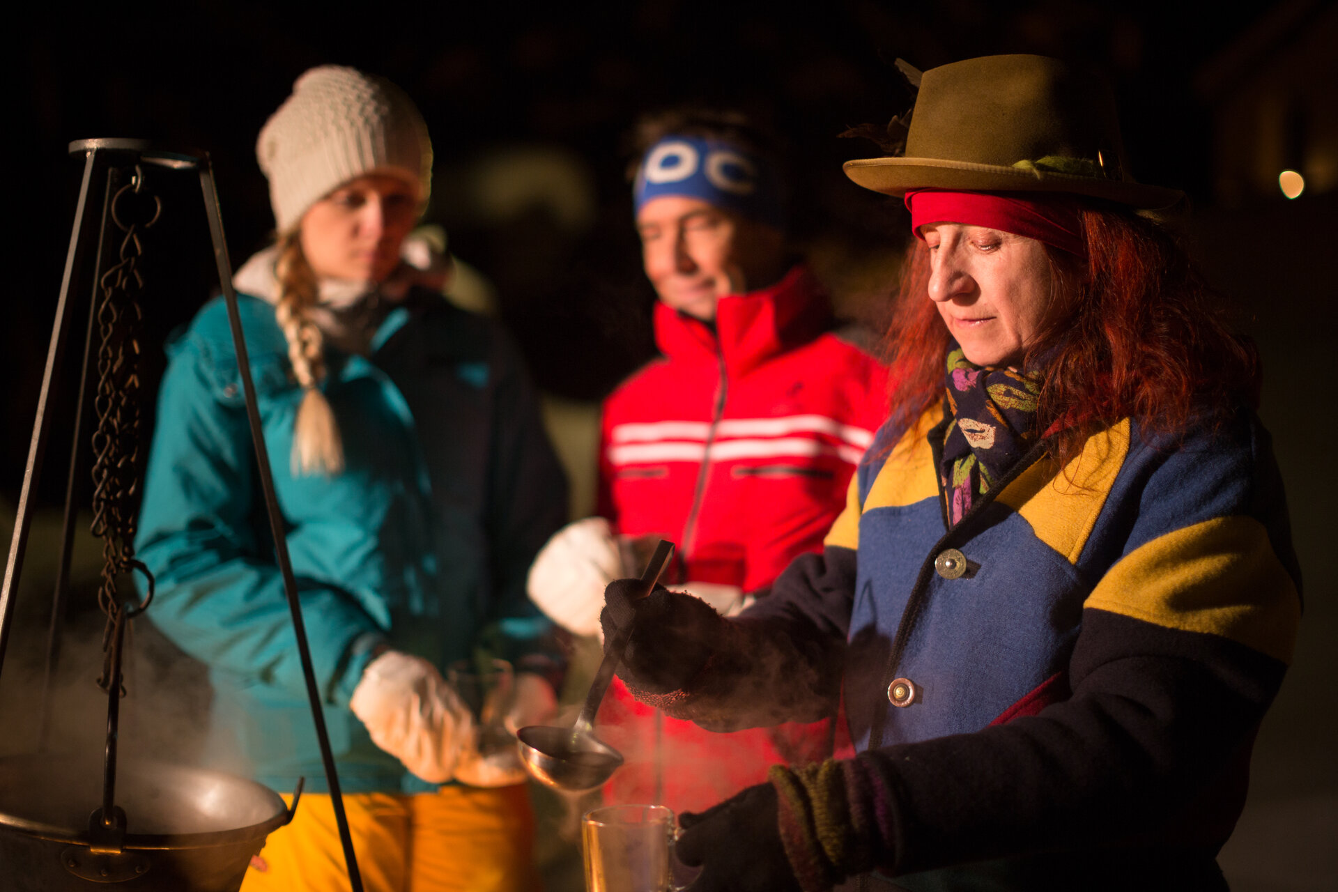 Nach der vereinten nächtlichen Bergfahrt mit der Montafoner Kristbergbahn geht es ganz gemütlich die ca. 250 Meter bis an die Bergknappenkappelle St. Agatha, wo es die ersten Sagen und Geschichten gibt. Als wärmenden Zwischengang gibt es ein heißes alkoholisches bzw. alkoholfreies Getränk aus dem Kupferkessel beim Bergknappenbrunnen. Anschließend geht es in die warme Stube vom Panoramagasthof Kristberg, wo Geschichte in Geschichten und eine feine 3-gängige kulinarische Reise ins frühzeitliche Montafon sich abwechseln.