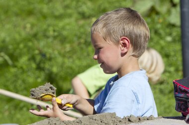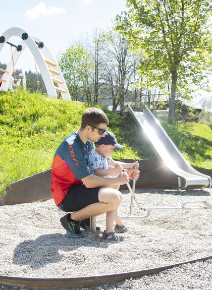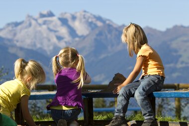 Am Ende des Silberpfads bei der St. Agatha Knappenkapelle und unterhalb des Panoramagasthofs Kristberg heißt die Silberspielwelt mit vielen Attraktion die Kinder willkommen. Unterschiedliche Spielelemente machen den Bergbau hier für alle Sinne erlebbar und lassen Kinder in die Arbeitswelt der Knappen eintauchen.