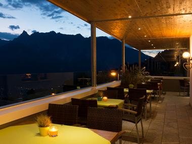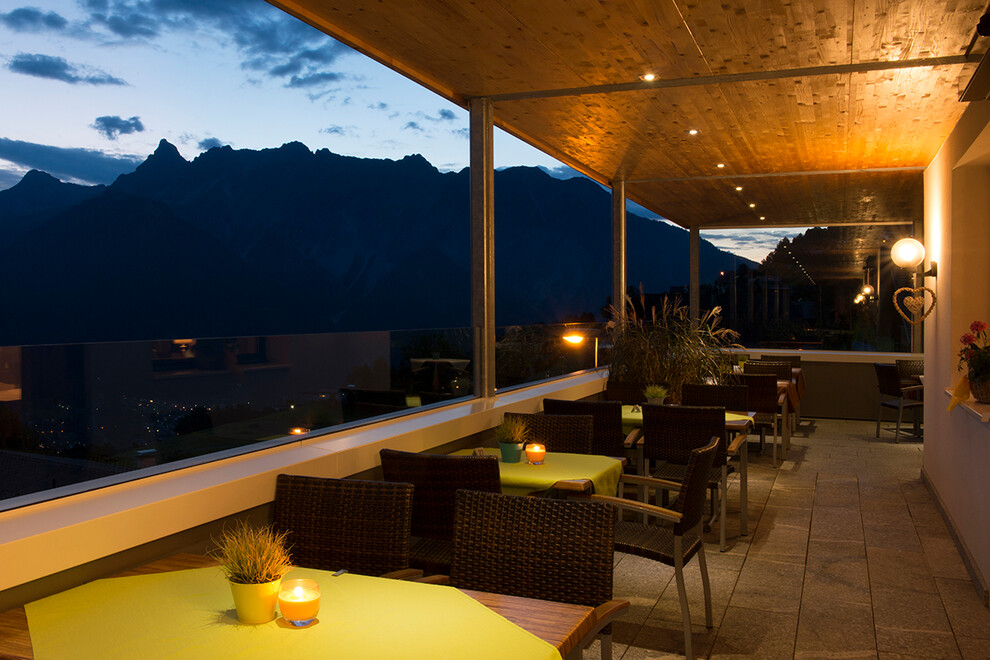 Von 08:00 bis 09:30 Uhr Frühstück mit Voranmeldung möglich, regionale Gerichten, Fischgerichte, nachmittags kleine Karte, Sonnenterrasse mit Panoramablick