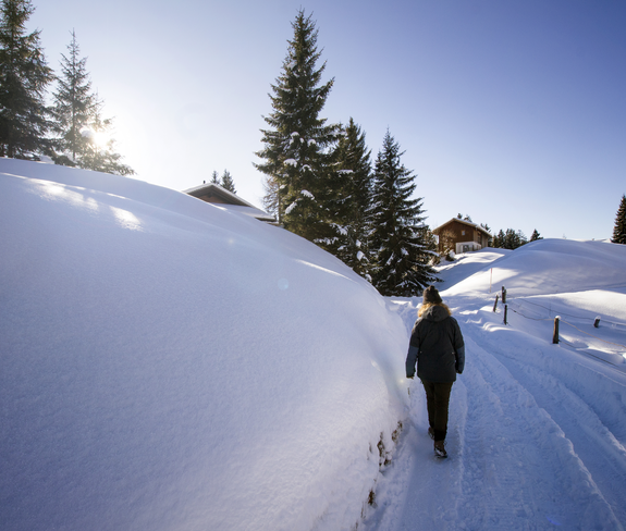 Schritt für Schritt lässt Du das Dorfleben in Bartholombäberg hinter Dir und stapfst gemächlich durch die malerische Winterlandschaft fernab von Trubel und Hektik in Richtung Kristberg!