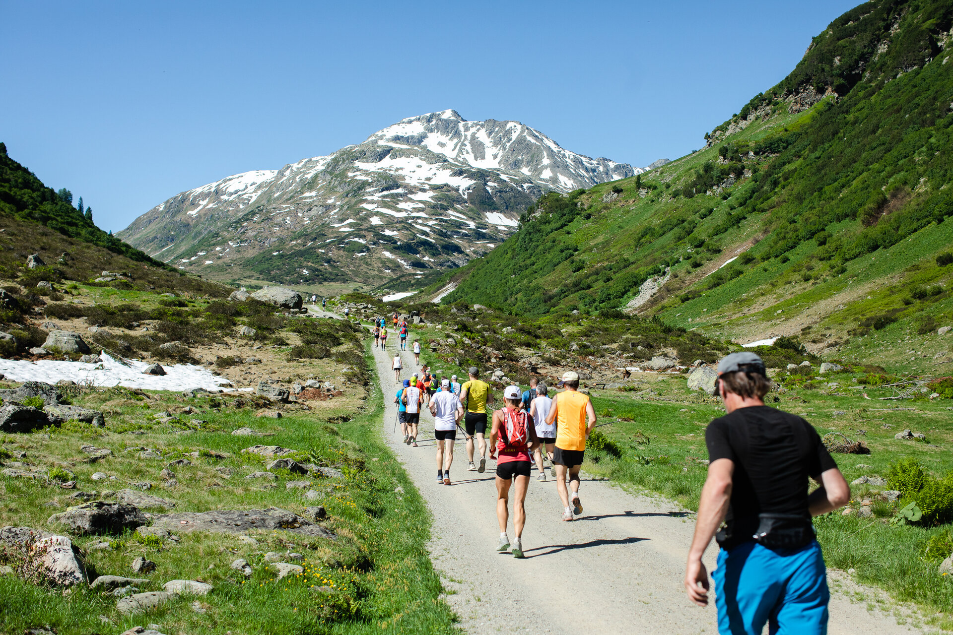 In St. Anton am Arlberg holten wir uns gleich die Startnummern. Das Drumherum in den Gassen, die positive Stimmung unter den Läufern, die immer gut gelaunten und motivierten Moderatoren Martin und Peter, das perfekte Laufwetter und das Ziel im Silbertal vor Augen ließ die Nervosität steigen. So ging´s nach dem Start gemütlich die ersten paar Kilometer bis zur Schluchtstrecke, wo ein schmaler Pfad die Teilnehmer etwas zur Vorsicht aufforderte und das Tempo sehr gemütlich war. Hier wurde auch noch viel geredet und gelacht. Bei der ersten Verpflegungsstation war sehr viel Betrieb und so wurde diese von mir ausgelassen, mit der Hoffnung bei der nächsten etwas zu bekommen. Was dann auch der Fall war. Die Temperatur war eigentlich perfekt, nicht zu warm und doch schön dem kühlen Bach entlang bis zu den nächsten Stationen. Es war für mich persönlich auch das erste Mal das Schönverwalltal zu durchlaufen und auch zu bewundern.