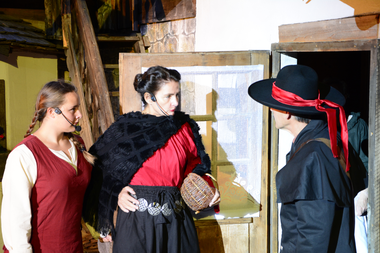 Nachdem wir die besten Plätze in der ersten Reihe fußfrei zugewiesen bekamen, waren wir nicht nur dabei, sondern mitten drin, als die Schauspieler loslegten. In gekonnter Weise und sehr professionell bekamen wir tolle Szenen präsentiert: vom Dorfleben, von der kargen Lebensweise unserer Vorfahren, von Liebe und Leid, von der Magie eines geheimnisvoll agierenden, südländischen Peppino, der bei einigen Bewohnern für Aufregung und Misstrauen sorgt. Andere wiederum bewundern ihn, geben ihm sogar Kost und Logis gegen gute Bezahlung. Es gibt ein gutes Ende, die Liebe siegt, der Geldregen kommt im richtigen Augenblick und der tosende Applaus bricht los. Gegen 23:00 Uhr ist das Spektakel mit großartigen Licht- und Toneffekten dann zu Ende.