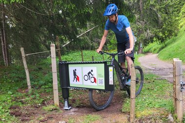 (E-)Mountainbiken in der einzigartigen Bergwelt des Montafon ist ein besonderes Erlebnis. Damit dieses Erlebnis auch nachhaltig und naturverträglich bleibt, gibt es ein durchdachtes Lenkungskonzept. Offizielle Beschilderungen, gezielte Sensibilisierungsmaßnahmen und praktische Lösungen wie das Flow Gate sorgen dafür, dass sich möglichst alle – Freizeitsportbegeisterte, Wild- und Nutztiere sowie Landwirtinnen und Landwirte – gleichermaßen wohlfühlen.